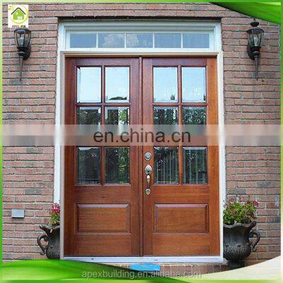 Product namecommercial solid wood exterior glass panel entrance doorsWood SpeciesSolid Door: Different solid wood door availableComposite WoodStandard sizesingle door leaf: 2100*900*150mm, or customizedSwing DirectionInward / outwardFinishingSapele, Black, White,Cherry, Oak or customizedFeatureMoisture-proof, mothproof, break resistance, firmness, high quality, durableApplicationSuit for project, business, family, decoration(room, office, hotel, etc.)Advantage of commercial solid wood exterior glass panel entrance doors1.More than 10 years production experinece2.High quality with competitive price3.Perfect after-sale service ahd in-time delivery4.With noble and luxurious design and can also be customized5.Sound proof and heat insulated, mothproof and shock proof, environmentally freindly6.Suitable for mass production7.Engineered stiles, rails and-Panels prevent warping and splitting for long-lasting beauty8.High-performance compression weather-stripping resists rot and corrosion while sealing out the weather elementsOptional Wood PanelsOur FactoryProduction Flow