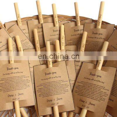Product DescriptionBest Price Personalized Engraved Bamboo Straws 8 inch with Thank you notes Wholesale In Bulk High QUalityBamboo straws make for a cute addition to your tropical cocktail themed tiki or Hawaiian luau party, bar mitzvah, work BBQ, or wedding event, complimenting your cocktails, exotic drinks and other bamboo decorations, such as your tiny, drink straw hats and umbrella stirrers! Easy to use, polished for a sleek, modern look, our straws are great for birthdays, family feasts, special occasions, parties, and everyday lifeThis bamboo is the perfect material and a great organic substitute to the plastic straw we’re all used to. By using these reusable, biodegradable, plant based drinking straws you are helping the environment by reducing plastic waste. Thank you for your environmental conscientiousness and keep drinking like a panda!MaterialBAMBOOQuantity>500Commercial BuyerCafes and Coffee ShopsSeasonEverydayDesign StyleRusticRelated ProductRecommended By SellerMain MaterialMain MarketsPacking & DeliveryOur Selling PointsCompany Profile