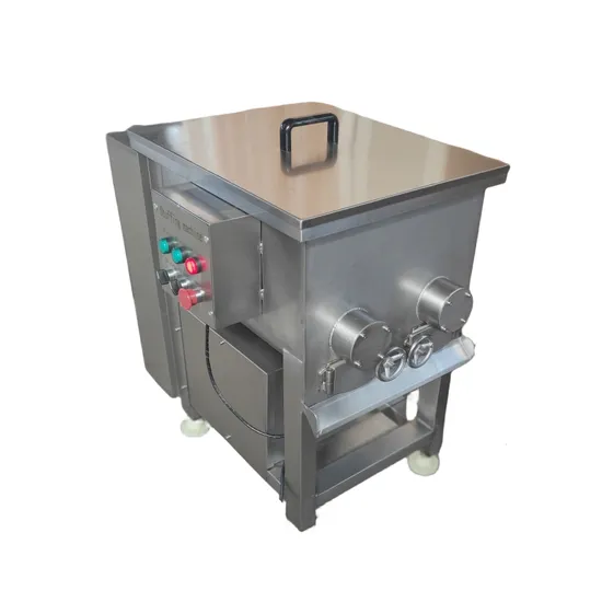The stuffing mixer is an essential equipment for mixing materials. It is highly efficient and easy to operate. It is the first choice equipment for making sausage products, granular and pureed mixed sausage products, and meatball products. It is also the first choice for producing dumplings, wontons, steamed buns, Optional equipment for pie-type pasta products. It consists of a frame, mixing page, mixing tank, control switch, motor, reducer, chain and other parts. It is mainly suitable for mixing various fillings, especially meat product fillings.