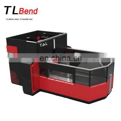 Company InformationCompany informationCompany: T&L (Shanghai) International Trading CO., LTD.Address: Wanda Plaza, Room 916,building 6, JiaDing District, Shanghai,201803,ChinaBrand: T&LContact: +86-15618396545Email: sales(at)Website: Facebook: /tuolugroups/Youtube: /channel/UCn9vu9S9ZtmdtQPEre9-Tjg Linkedin: /company/tuolumachinery Product DescriptionTechnical specifications Max. sheet metal size:2500*1250mmMin. sheet metal size:400*145mmMax. bending height:200mmMax. bending length:2500mmMax. diagonal dimentions:2800mmMax. processing thickness:3.2mm(Q235A),2.5mm(SS),4mm(AL)Min. processing thickness:0.5mmMax. weight of platform:2000KgMax. height of platform:200mm(include wooden pallet)Typical workpiece beat:about 25s(2000mm*750mm*t1.5mm 4 bending each side) CNC bending machine, It has high quality, high speed and high efficiency bending function, and is generally suitable for automatic bending of box type sheet metal parts. CNC panel bending machine adopts servo-controlled folding and pressing device, 400 kN bending force, 1000 kN pressing/hemming force. Open structure for easy side unloading. Universal bending dies, bending machine adopt it to realize positive and negative angle bending, large arc, hemming bending, and high efficiency bending of complex section workpiece. Made of die steel, the die adopts high precision processing technology ensures the accuracy and reliability of bending, and the special manufacturing technology ensures the small wear of the die. 1)positive bending 2)negative bending 3)hemming 4)large arc. Servo-driven bending device, three axis ganged, can achieve a variety of motion track efficient folding. For different materials, different thickness, system can automatically execute different gaps and trajectory. This equipment is energy-saving, environment-friendly, low energy consumption and low noise. Adopting advanced processing technology, processing efficiency is improved obviously, with stable and reliable mechanical structure. The pressing device adopts two-way servo pump control technology, with high speed and low energy consumption. Vertical motion to avoid the impact on the minimum size of the workpiece. The crowning compensation mechanism adopts the special patent structure and has the function of compensating the deformation of the horizontal crowning of die. Automatic die changing device It has functions of folding and avoiding, automatic combination and so on. It is convenient to process all kinds of box parts. The die changing device consists of an intermediate avoidance die, a standard segment die, a clutch moving device and a rotating insert die device. 1)segment die driver 2)segment die 3)insert die 4)mediate avoid device 5)insert adjusting device During bending box, the side edge of the first fold makes the pressing die unable to move up and down directly, so there must be avoidance action. The principle of process avoidance is that the middle avoidance die moves on both sides and the standard section die moves towards the middle so that the die passes over the folded two sides. It should be noted that due to the structural constraints, the corresponding width of the workpiece should be in line with the following table. Bending workpiece parameters ItemsUnitValueSketchX min mm400+4tZ min mm145+a+b+4tH max mm165a,b(max) 45c,d(max) 30 A clutch connecting block driven by compressed air is installed inside the standard section die to connect with the section die driving module, which facilitates the adjustment of different lengths and sizes. The insert die can compensate for the short size deviation in the tightening length. The minimum size dividing interval for pressing the die length is 5mm, meeting the needs of various bending plate lengths. The lifting trolley can walk along the guide rail. When stacking, the trolley can be driven to the desired position, and more flexible feeding mode can be selected, such as forklift or driving. The positioning block of sheet metal is on the feeding table, and the whole stacked sheet metal is positioned on the top in both directions of X and Y, thus realizing the pre-positioning between the feeding sheet metal and the machine tool. During the feeding process, the system controls the trolley to rise slightly. Due to the tolerance of the feeding suction trajectory, every 2-3 sheet trolley can rise a certain distance. Manipulator The functions of changing sides, rotating and moving are realized in the horizontal planeC-type structure, more flexible and freer spaceServo driver, linear guide, high precision Bending manipulator has the function of positioning and rotary transportation of sheet metal. The utility model is composed of a central positioning device, a rotating device, a clamping device, a mobile conveying device and a base. After the sheet is in place, it realizes the function of centering and pressing, and cooperates with the main machine of folding to realize various folding process actions. 1) positioning device 2)rotating device 3)clamping device 4)moving bracket 5)holder Positioning pushing device will place the plate to be folded in the X and Y directions, which can realize the pre-positioning between the plate and the machine tool. There are two groups of positioning blocks, which can locate the corner and the edge respectively. The combination has nine positioning functions, and the Y direction of the left and right positioning seat can be adjusted (+50mm) to adapt to the positioning function of various sheets. Compressing device realizes reliable compaction by servo-driven screw driving connecting rod, and can realize reliable clamping of plates of different materials and thickness. Rotating device realizes the rotation of the rotating block by servo driving motor and reducer. The high precision encoder realizes closed-loop control, and the rotation accuracy is stable and reliable. The servo drive motor drives the precision ball screw to achieve stable and reliable feeding accuracy. The C frame