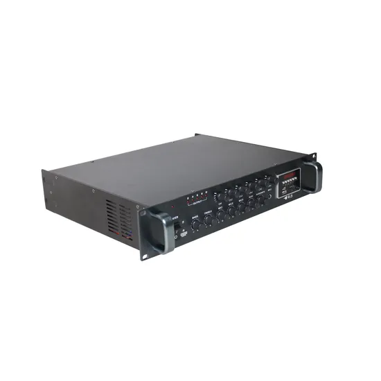 360W Mixer Power Amplifier with USB and Tuner 6 Zones Description:This series of commercial grade mixer power amplifier deliver clean and powerful sound with reliable performance. Ranging from 70W to 650W RMS power, with built-in 6-zone speaker selector and individual volume controller for each zone. These highly flexible mixer amplifiers designed for a wide variety of voice and background music applications such as restaurants, bars, stores and any small-medium size installations.
