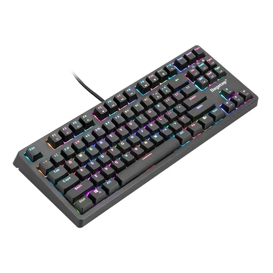 Here are details about Segotep KGM-002: Compact mechanical gaming keyboard--Segotep KGM-002 small compact with dust proof mechanical blue switches, quiet click sound fast action with minimal resistance without a tactile bump feel RGB Colorful LED RGB backlit-- Mechanical USB gaming keyboard 18 different lighting effects, precision engineered keycaps offering crystal clear uniform backlighting Ergonomic designed--High-quality durable double shoot-abs construction with plate-mounted mechanical keys and switches that stand up even during the most testing marathon gaming sessions Anti ghosting all 87 keys are conflict free--N-key rollover featuring 12 multimedia keyboard keys and a non-slip ergonomic, splash-proof design comes with gold-plated high-speed corrosion free USB connector for a reliable connection Compatible with windows 10, windows 8, windows 7, limited mac os and Android keyboard support works well with all major computers brands and gaming pcs.