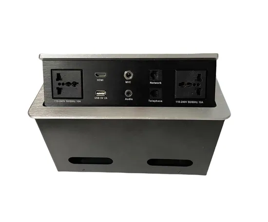 | Panel processing: high-grade hard aviation aluminum panel, through oxidation, wire drawing, colouring and other processing, all show the socket of high-end, luxury. Product main structure design. Pop-up desktop socket adopts pneumatic auxiliary mechanism design with trunk lock machines. Method of use: When using just light socket at the top of the panel, release mechanism trunk lock, the socket panel open by pneumatic rod device. Hidden socket of the two power supply, two data USB function modules according to 45 DHS. After using, light to close the trunk lock, press the socket panel on the front panel of each function module interfaces with hidden, closing the socket after maintain flush with the desktop. |