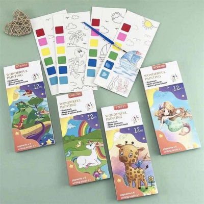 The Portable Children's Graffiti Watercolor Painting Coloring Book is for creative expression and entertainment. This product is made using a variety of materials, including glossy/matt art paper, kraft paper, and durable greyboard for hardcover options.