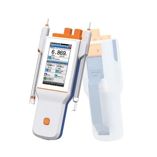 Product Overview M510T-A Multi-parameter Analyzer GENERAL FEATURES Color High contrast LCD touchscreen, 4.3 inches. Intelligent operation system provides features including user management, calibration management, electrode management, method management, data management, Log Management and etc. Multi-reading feature allows auto-read, timed-read and continuous-read. Automatic/Manual temperature compensation ensures accurate results. Auto-hold feature senses and locks the measurement endpoint. Data Storage 1000 sets for each parameter (GLP-compliant). Data analysis feature helps user review, compare and recalculate results. Support for USB communication. Auto-power off feature effectively extends the battery service life. Reset feature automatically resumes all settings back to factory default options. IP65 waterproof. The portable meter is suitable for fields measurements and out door measurements. pH 1-8 points calibration with Standard Recognition. Selectable pH buffer groups, including USA, NIST, DIN, GB, MERK, JIS. User-defined pH buffer or buffer group is supported. Automatic electrode diagnosis with pH slope and offset display Ion 1-6 points calibration. Selectable measurement unit, including μg/L, mg/L, g/L, mmol/L, pX, ppm, ppb, etc. Multi-measurement modes are supported, including Direct Reading mode, Standard Addition mode, Sample Addition mode and GRAN mode. Over 10 methods are built-in, including F-, Cl-, Br-, I-, NO3-, BF4-, NH4+, K+, Na+, Ca2+, Cu2+, Pb2+, Ag+ and etc., user-defined method is supported. Conductivity 1-5 points calibration automatically recognizes the standard solutions. Settable parameters, including cell constant, reference temperature (5/10/15/18/20/25°C), temperature compensation coefficient and TDS factor. Temperature compensation type (none, linear, pure water). Large color touch screen. Easy operation and comfortable experience. Method management. Various methods are built-in, available for methods customization. Support for Bluetooth. Assortment of accessories.