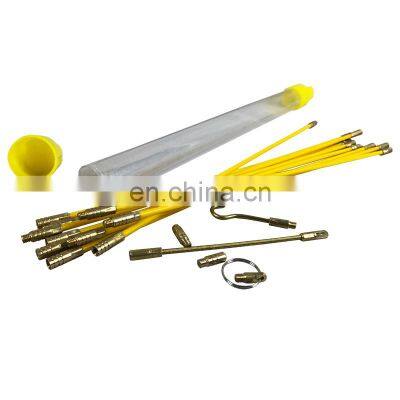 Product Description6mm 1000m Fiberglass Electrical Connectable Wire Cable Pulling Fish Tape Pull Kit /cable rod set ️【Cable rod set】- 15m Cable Pulling Rods Fish Tape Set made of fiberglass material, includes 15 rods (3/16" diameter) with threaded brass connectors, 3/16" acrylic connection, brass push and pull rods * ️【Excellent Extensibility】- For installing cables, passing cables through straight piples. Rods can be used individually or threaded together for desired length, can be extended up to 50 feet * ️【Convenient To Store】- Bright yellow rods are highly visible and comes with plastic storage case, very convenient to store * ️【Wide Application】- For running wire through walls, attics, crawl spaces, sub-floors and suspended ceilings, great insulating property * ️【More Advantages】- The item is Strong flexibility (But do not bend forcibly while using), wear-resistant,corrosion-resistant and anti-oxidation Specification1. Fiberglass rod dimeater :4mm, 5mm, 6mmThis fiberglass rod diameter is 4mm, 5mm, 6mm, fit for most common used cable , great for installing cable.2. 10pcs rods with connectorsThis cable puller set includes 10 rods with threaded brass connectors, flexible acrylic connection, brass push and pull rods.Can be connected according to your need.3. High quality glass fiber and brass This cable puller set adopted high quality glass fiber, excellent insulating property, the hook and eye are made of brass , has a long service life.4. FlexibleThis cable puller set contains 10pcs rods with threaded brass connectors, and other kits you may need , you can connect and splice according your requirement.5. Wide applicationsThis cable puller can be used for running wire through walls, attics, crawl spaces, sub-floors and suspended ceilings, and small places, widely used in many places.MaterialFiberglass, brassColorYellow, blue, red or customized Length330mm or 1000mm diameter 4mm, 5mm, 6mm, Weight 0.2kg Package Included10 x Rods with threaded brass connectors.1 x Flexible acrylic connection.1 x Brass hook end for pulling.1 x Brass eye end for pushingDetails ImagesRelated ProductsFeature1,Fiberglass core is coated with high visibility sheath to protect against rod abrasion and reduce friction2,Sell with fish tape kits, easy to use through corner and the wire knot will not lock in corner3,Accessories attach to fiberglass rod for greater versatility and easier fishing4,Transparent plastic bucket, easy to carry and store, pc material tube is solid and sturdy5,Bright Blue ,red rods are highly visible, iron terminal and hook will never rustFAQQ: Are you trading company or manufacturer ?A: We are factory.Q: How long is your delivery time?A: Generally it is 5-10 days if the goods are in stock. or it is 15-20 days if the goods are not in stock, it is according toquantity.Q: Do you provide samples ? is it free or extra ?A: Yes, we could offer the sample for free charge but do not pay the cost of freight.Q: What is your terms of payment ?A: Payment<=1000USD, 100% in advance. Payment>=1000USD, 30% T/T in advance ,balance before shippment.If you have another question, pls feel free to contact us as below: