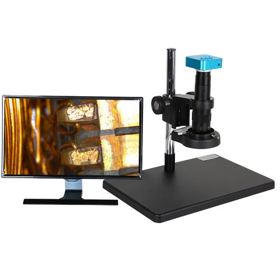 Video microscope HD1602X adopts the new HDMI high-definition digital transmission mode and is equipped with matching software. It has photo, video, and measurement functions. It can export reports to facilitate the retention of inspection reports. The microscope is directly connected to the monitor.