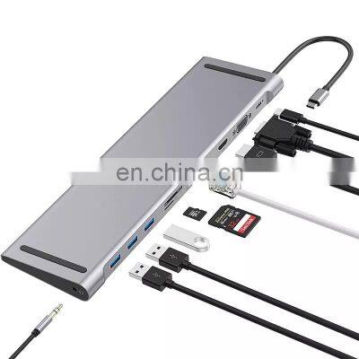 Hot SaleProduct Description10 in 1 Usb c hub Multiport usb type c hub adapter laptop docking station for macbookCLICK HERE:SMALL ORDERS IS WELCOMED10 in 1 Laptop Docking Stations USB3.0*3+HDTV*1+PD charging +1000mpbs ethernet *1+TF *1 SD *1+1080VGA*1+AUX*1 11 in 1 Laptop Docking Stations USB3.0*1+USB2.0*4+USB-C PD charging +HDTV 4K HD+VGA+100mpbs ethernet+DC3.5mm audio +TF/SDItem Nam:10 in 1 USB C HubItem number:HUB-042Interface:Type C 3.1HDTV 2.0:4K@30Hz HDTV Video OutputPorts contained: USB3.0*3+HDTV*1+PD charging +1000mpbs ethernet *1+TF *1 SD *1+1080VGA*1+AUX*1Material:Aluminium alloy coverColor :GrayLOGO:customized ,laser logo (We could laser customer logo for even 1pc )Package :Each with color box,50pcs /ctn,carton size:62*38*22cmCompany IntroductionWhy choose us?OEM to meet all kinds of customers’ needs.Professional production equipment and abundant supply.High quality with preferential price on time.High quality after-sales service.Small order welcome.100% on-time shipment protection.Basic models are available for samples, samples free.FAQQ1: Are you a factory or trading company? A1: We are a manufacturer.Q2: Where is your factory located? A2:Our factory are located in Guangzhou city.Q3: May I buy samples from you? A3: Yes! You are welcome to place sample order to test our superior quality and services.Q4: Which port is the nearest from you?A4: Guangzhou/Shenzhen Port.Q5: What is your Warranty?A5: All the products will have 12 months Warranty.Q6: Can you put my brand name (logo) on these products?A6: Yes! The professional OEM services will be welcomed to us. Our factory accepts to make the logo free for bulk orders.Q7: May I know the status of my order?A7: Yes. The order information and photos at different production stage of your order will be sent to you and the information will be updated in time.Packing&Shipping