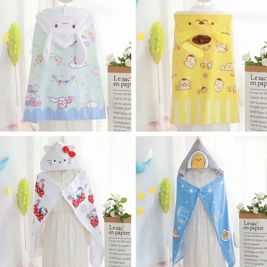Sanrio Hello KT Bath Towel Anime My Melody Dry Hair Hat Cute Cartoon Cinnamonroll Beach Towel Home Bathroom Kid Bathrobe Cape