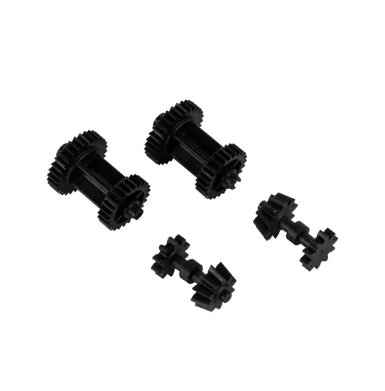 2+2 Screw with plastic helical gear. The embedded crowning plastic gear, with a precision level of DIN 9, is injected by mold.