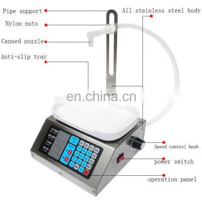 2019 hot sale drink filling Machine/juice filling machine on sale Brief introduction The machine can apply to filtering and filling all kinds of liquid, such as Wine, liquor, fruit juice and so on, the raw material temperature is less than 80 Degrees Celsius. Our products are widely used in food additives, chemical raw medicine, flour, milk powder, starch, sugar,etc. Features 1.Adopts full stainless steel manufacturing process. 2.Electronic screen, PLC control technology, the operation is simple. 3.Independent suspension sensors, signal stability, ensure the weighing precision. 4.Two speed feeding system, infrared sensor, weighing precision is high. Parameter Product parametersProduct modelCSY-1810Adjustable flow rateRated voltageAC100-220Vdata storagerated power30WPower failure memoryProduct SizeL18cm*W18cm*H12cmAutomatic removing bottle weightTotal Weight2.5kgAutomatic start and stopCanned flow3.5L/minuteAutomatic frequency conversionCanned range10g-3kgAutomatic countingMaximum stroke2mAutomatic resetCanned height0-32cmDelay adjustable