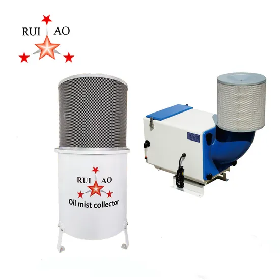 oil mist collector is suitable for CNC numerical control lathe, washing machine, Surface grinding machine, gear hobbing and milling machine and the slotting machine, vacuum pump, spray laboratory, electrical discharge machining, CNC machining center. RUIAO centrifugal vertical round air oil mist collector dust waste fume filter extractor