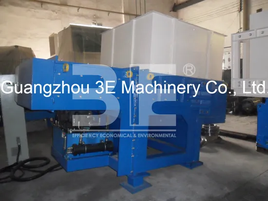 3E MACHINERY's WT48150/ WT48200/ WT48250) Single shaft shredder is a widely used type of recycling machine. It's an ideal machine widely used in plastics, paper, wood, fiber, rubber, organic waste and non metallic materials. It consists of a single solid shaft with square blades bolted into it. This shaft rotates at about 74-83 RPM, depending on the model, and these blades pass through a bed knife on the base of the cutting chamber. A hydraulic ram continually pushes the material against the shaft of the shredder for continuous cutting. It is almost always used with a screen, which retains the material in the cutting chamber to reduce the material even further. And the standard cut on a single shaft shredder is 25-40mm. The size of the machine required for requirements of each client and project, such as depends on the initial size of the material, capacity and the final output size etc.
