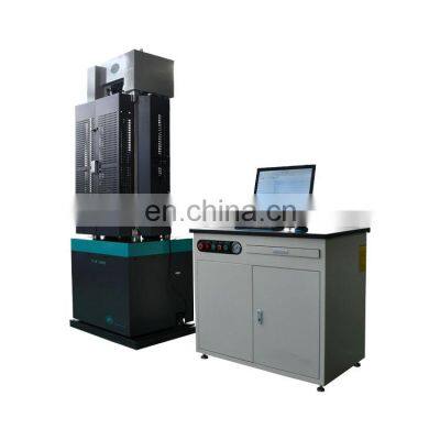 WAW-B Micro Electromechanical Liquid Servo Universal Test MachineUsage OverviewIt can be used for tensile, compression, bending and shear tests of various metal materials. It can also be used for compression tests of plastic, concrete, cement and other non-metallic materials. It can be added with simple accessories to complete variousperformance tests of belt chains, wire ropes, welding rods, tiles and components. This machine adopts the oil cylinder, low height, light weight, especially suitable for engineering construction department.Product DescriptionThis series of testing machines are loaded by hydraulically. Electro-hydraulic servo control technology is used to test the tensile, compressive, bending and shearing of metal and non-metal materials. It displays various closed-loop control methods such as curves, forces, deformations and displacements, can be switched at will in the test. Automatically store stored data. It can meet GB, IS0, ASTM, DIN, JIS and other standards.SpecificationModelWAW-100BWAW-300BWAW-600BWAW-1000BMax. Test Force(KN)1003006001000Tensile Space(mm)700700700700Compression Space(mm)600600600600Column Number6666Compression Platen(mm)Φ148Φ148Φ198Φ225Round SampleTest Range(mm)Φ6~20Φ10~32Φ13~40Φ13~40Plat Sample Test Range(mm)0~200~100~130~13Compression Plant Size(mm)148148198225Piston Stroke(mm)200200200200Diameter of bending roller(mm)50/5050/5050/5050/50Bending fulcrum span(mm)50-30050-30050-30050-300Effective Test Range1%-100%FSMachine GradeLevel 1/ Level 0.5Relative indication error±1%Test Force Resolution1/300000Stress Rate Control Range1MPa/s-50MPa/sStress Rate Control Accuracy1/300000Deformation Resolutionaccording to the number of selected encoder lines, the resolution for 3600 lines is 0.007mmStrain Rate Control Range0.00025/s-0.0025/sStrain Rate Control Accuracy±2%Displacement Resolutionaccording to the number of selected encoder lines, the resolution for 3600 lines is 0.007mmDisplacement Rate Control Range0.1-1000.1-1500.1-1800.1-220Displacement Rate Control Accuracy±2%Stress/Strain/Displacement Control Range1%-100%FSStress/Strain/Displacement Control Rate<10%FS: ±2%;>10%FS: ±1%Oil Control Cabinet(mm)600*740*1560Host Size(mm)620*520*1723810*560*1910880*570*2050940*640*2250Motor Power(kW)2.22.22.22.2Total Weight(kg)16501770215029501.The oil source control part adopts Siemens motor and high precision digital valve.2.The space adjustment mechanism adopts the Kawashima reducer with low noise.3.Using semi-closed hydraulic jaws, high strength.4. Vertical control cabinet, touch industrial computer, convenient and practical, saving space.5. The test adopts the microcomputer automatic control mode, which has the functions of stress rate, strain rate and stressretention and strain retention.6. Host four-column double screw test space structure.7.High-speed Ethernet communication interface communicates with PC.8.Standard database management test data.9.High-strength, high-toughness and beautiful protective net for safety protection.Our AdvantagesInstallation and training · If buyers visit our factory and check the machine, we will teach you how to installand use the machine, and also train your workers/technician face to face. · Without visiting, we will send you user manual and video to teach you to install and operate.After Service · One year guarantee for whole machine. · 24 hours technical support by email or callingAny questions, please contact me without hestitation, welcome your inquiry!Price can be negotiatedour customerCompany Profile ` Cangzhou Lovely Group Co.,Ltd. is a professional manufacturer specializing in Testing Equipment,Universal Testing Machine ,Asphalt Tester,Test Moldsand Soil Road Lab Tester,supply verious type of products ..... We assure high quality to you. · All our products are made in China .Excellent quality with competitive pricePacking & Delivery · Tianjin port or Qingdao Port deliver by sea and Also can ship by air via express companyFAQQ1: Are you a factory or trading company? A: We are a factory specializing in manufacturing all kinds of scaffolding material.Besides, we could also purchase products as request. Q2: Where is the loading port?A: Tianjin port or Qingdao Port.Q3:How to choose the Transportation Term? A:Usually,we may according to your needs,we may choose the most rasonable freight,thento select for you. Q4: What certificates do you have? A: We have ISO 9001, CE, SGS. Q5: Do you have an OEM service? A: Yes. We can provide OEM services according to your requirements.Q6: What are the payment terms? A: T/T payment is preferred and other could be accepted, such as L/C, D/P, Western Union, PayPal etc. It is negotiable.Related Products