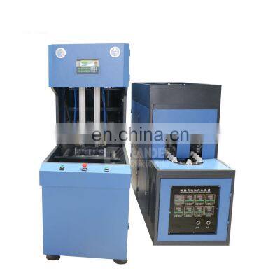 Semi automatic 2 cavity blow up molding machine / machineryProduct DescriptionSpecifications:GD-880 Semi-automatic water bottle blowing machineCE approvalSpeed: 700-800pcs/h for 500ml pet bottleVolume:220-2000mL Brief introduction of water bottle blow molding machine:1.Adopt special electronic controlling circuit for heating; high efficiency in simultaneous controlling one lamp or more; lower power consumption.2.Adopt the theory of heat transfer and feedback while designing the shape and thikness of preform.3.The preform will be heated evenly, not be influenced by outside environment.4. Cooling system with cold air cycle ensures same heat exposure of internal and external surface of the bottles.5.The air exhaust system designed by CAD can guarantee the deviation of heating furance temperature +/-1 degree.6.Air circuit system consists of movement and blowing so as to meet the needs of different air pressure, also to provide stable high pressure for blowing different shapes of big capacity bottles.7.The system is equipped with silencer, connecting rod and articulated refueling devices.8.Two modes of operation: semi-automatic mode and automatic mode.9.Small size, low investment. one person enough to operate, simple and safe. Machine show Bottle Preform Preheating datas setup interface Heater 2 cavity mold Blowed bottles: Liquid soap 2D drawing Main technical parameter:TypeItemUnitGD-880 semi automatic blow molding machineContainerProduct material/PETNumber of cavitiesL2 cavityTheoretic outputBPH800BPHMax bottle heightmm450Max bottle diametermm35-220MoldingClamping forceT20Clamping stokemm230Max stretching strokemm380Max mould thicknessmm380Auxiliary systemHigh air compressor 1.2m3/30KGAir dryer 1.0m3/30KGAir filter 2.0m3/30KGMain machine electricityVoltage standardV/Hz380v/3PH/50Hz or special orderTotal powerKW15Machine size and weightMachine weightT0.82Blow molding machine dimensioncm148*60*213Perform ovencm137*61*134Company InformationOur exhibitionOur teamOur ServicesCustomer's service:1.Grandee company can provide turn-key project for you, only you have any idea to start beverage factory plant.2. Grandee company have professional design team, our engineer can draw bottle samples and flow chart of workshop for you .3. Grandee company give you the best quotation for all kinds of beverage production, only you can tell me which kind of drink you want to product, what is your capacity(how many bottles one hour) what is you bottlematerial, pet or glass,etc After service:1. We send the engineers to help installing, commissioning and training, the engineers start from our factory area.2. We supply below necessary documents with the machine: a. Machine layout b. Electricity diagram c. Machine certificate d. General manual book/maintenance book3. After one year guarantee, the seller provides payable spare parts and technician’s VISITING maintenance service.FAQQ1: How to find suitable machine or complete beverage production line?A1: Looking for beverage filling machine in www.grandeemachine.en.china.cn •Enquiry: Contact us by email, phone call, fax, Instant Messenger (Trade manager, Skype, WhatsApp, Wechat) and let us know your requirements • Discussion: Specify the items and what are you exactly looking for. Q2: Are you a trading company or a manufactory?A2: We are the manufacture of water/beverage filling machine and water treatment system over 10 years.We just not only sell drinking water machines and other related equipment , Quality is our culture. We have rich experienced engineers with technicians working team , providing good and after-sales service term , professional salesman terms . Q3: Do you have technical support after we purchased your machines?A3: We will arrange our professional technical to go aboard to your factory, they will help you and teach you how to install and maintenance the machines which you purchased. Or help you to fix machine when it has problems. Q4: If you buy our machines, can you offer us wear-out spare pats?A4: We provide our high quality machine 2 years guarantee , and we will also offer you 2 years wear-out spare parts for free. Once your machines broken or doesn't work within 2 years and you can't solve it, firstly, we will try to help you to find problems from your words description by phone or other communication tolls. Secondly, if the phone solutions still not work, our engineers will go to your factory to solve it. Meanwhile, they will teach you the related experiences for fixing.