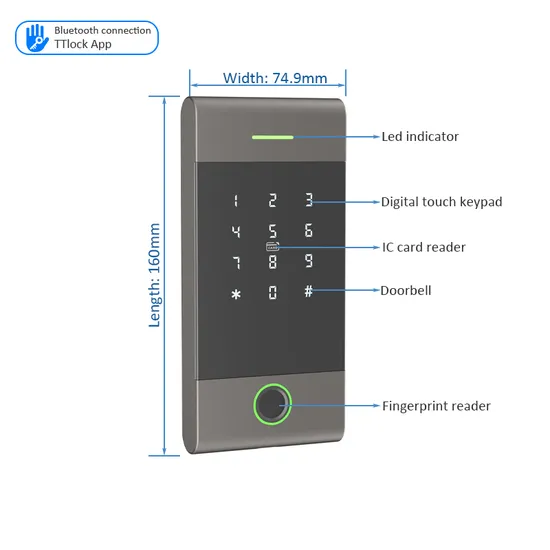 Waterproof IP65 RFID Card Password Remotely TTlock Doorbell Access Control Card Reader With TTLock