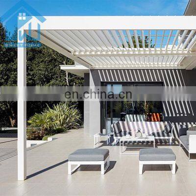 Product NameModern design bioclimatic motorized aluminium louvered pergola Materials Details1,Post: aluminum alloy 6063 T5 2,Blades : aluminum alloy 6005 T5 3,Beams: aluminum alloy 6063 T5 4,Gutter :100x100x2mm colors can be customizedControl wayMotorized/ManualFunctionWaterproof ,sunshade,windproof ,snowproof, house space extendingApplicationVilla,balcony ,garden ,backyard ,roof ,restaurant,decking ,swimming pool and so onWind Resistant180-220 KM/HSnow Loading60-100cmSizePopular standard size:3x3x2.5、4x3x2.5、5x3x2.5、6x3x2.5 or can be customizedOther related materialsSide screen/curtains, side shutter ,LED lights,heater ,fans,glass doors,outdoor furnitureInstallationWe will provide very detailed drawing and video for the installationOthers1.MOQ:1 set, we welcome small order 2.Production: we are factory , we can provide 10-15days fast production time 3.Warrenty:10 years 4.Color:White, Grey, Black, or customized colors availableFAQQ1. Is this aluminium louvered pergola easy to install?A: We have the assembly manual instruction specifically made according to your project site. It's a DIY product designed to be easily assembled and we can provide installation video.Q2. How long is your products' warranty?A: All our products have 10 years warranty.Q3:How to guarantee the quality of the products?A:We have our own QC team to control the products quality for all our clients'orders before loading.Q4. How can i get a price of needed aluminium louvered pergola?A: Please give the exactly size and quantity of your required aluminium louvered pergola. We can give you a detail quotation and free design solution based on your requirements.Q5.I am a small wholesaler, do you accept small order?A: It's no problem is you are a small wholesaler, we would like to grow up with you together and our MOQ is 1 set.Q6. Is my first time to export from China, what if i have no experience?A: Don t worry, we have very professional sale will guide for and we can provide one stop solution including deliver the door to your home address with customs.Q7. What kind of payment terms would you accept?A: We usually accept T/T, L/C, Western Union, etc. If you prefer other payments terms, please feel free to discuss with us.Q8. What if i meet the problem after installing and using this aluminium louvered pergola?A: As our principle is our business had been built on hoes & backed by customer service.we are verified supplier in Alibaba. com and our can provide 10 years warranty, so if you meet any problem for using thisaluminium louvered pergola,welcome to contact.