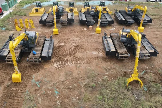 DIG-DOG Amphibious Excavator is specially designed to work in a swampy area, wetland, shallow water, and all soft terrains with the ability to float on water. DIG-DOG well-designed amphibious pontoon/undercarriage has been widely and effectively applied for removing silty clay, clearing silted trenches, removing wood, and all swampland and shallow water operation where the traditional standard excavators have limits.