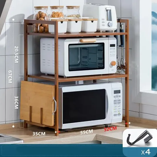 Product Description Elevate your kitchen experience with our exquisite Double-Layer Bamboo Kitchen Storage Organizer, meticulously crafted to serve as an elegant microwave oven display stand. This versatile piece not only adds a touch of nature-inspired beauty to your space but also provides a smart spice rack shelf and a convenient cutting board holder, making your culinary endeavors both stylish and efficient. Product Parameters Minimum Order Quantity: 300 pieces. Price Range: $9.00 - $12.00.