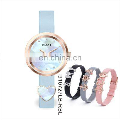 Wholesale Blue Soft Silicon Strap MOP Dial Girl Watches Luxury Charms Women Watch Custom Logo [ OEM & ODM ]Product Descriptionwomen watch custom logo ModelsCaseMovementMOQ910727LB W1Stainless steelJapanese Quartz movement50 Packaging & Shippingwomen watch custom logo tchStandard PackageIn generation, 10 pcs are taken in a styrofoam tray.10 trays in a carton. Total 100pcs in a carton.Special Package or Custom-made Package1.If you have special request with packing,please let us know. Here we could give many packing ways to you.2.Custom-made boxes are available,we have great packing supplier for custom-made box.if you have gift boxes request, we could give you many design with full support.Delivery1.Ship in 3 days after payment if in stock.2.For OEM order,generally 30-60 days, based on different type and quantity.Certificationswomen watch custom logo Our Serviceswomen watch custom logo Complete sevice for every order:Pre-sale service:1. Watch samples can be offered with sample cost and courier fee charged by buyer's side.D2. self-own factory--- We have full stock,and can deliver within short time.3. 15 years experience service for OEM/ODM orders.4. Superior quality products & competitive price, is what we are trying best to offer you.5. All our products could produce with water-resistant function, 100% tested by waterproof test machine.6. Our watches can comply with CE/RoHS, nickel free, etc. 100% safety strap, comfortable, eco-friendly and non toxic to body. In-sale service:1. We will calculate cheapest shipping cost and make invoice to you at once.2. The real photos of the package can be provided for your orders before shipment.3. Check quality again, then send out to you at 2-3 work days after receving your payment.4. Email you the tracking number, and keep tracking the parcels until it arrive you. After-sale service:1. We are very glad that customer give us some suggestion for price and products design.2. If you have any question,please contact us.We will do our best to satisfy you. 3. We will send many newest styles to our old customer.4. Warranty:Within a year after we delivery the goods, if the watch movement have defective,we will arrange movement to replace the bad movement(except battery consume problems).Company Information HK Dualtime International Co.,Ltd is the professional watch manufacturer specialized inthe research, development and production of wrist watch. Our company owns 30 people of development and design team.These designs include stainless steel/silicon quartz watch,mechanical watch and smart watches.Our company covers an area of approximately 2,500 square meters and has more than 70 staffs. Over 50 great suppliers that have worked with us since our established,and all of our products comply with international quality standards that are greatly appreciated in a variety of different markets throughout the world. 1. We are Alibaba Assessed Gold Supplier with 15 years experience service for OEM/ODM orders. 2. Best production capability ,best quality control, Best Service 3. Self-own factory & Innovative R&D team 4. 100% QC inspection Before Shippment. All our products could be produced with water-resistant function, 100% tested by waterproof test machine. 5. CE&RoHS listed,competitve price.6.We pay high attention to the customer’s requirements, product quality, factory audit and after-sales services.FAQwomen watch custom logo Q:What is your MOQ? Can I mix colors & styles?A:No MOQ limited for in stock watches. You could order whatever you like items in stock.For normal custom-made series, the MOQ is 500 pieces for each model each color.Also, we will provide you with the best solution according to your req. Q:Can we have our logo on the watches?A:Yes.We accept OEM & ODM from customer, latest designs every month to our clients.OEM is welcome and design services will be provided after order is placed. Q:Will you provide samples and how much is it?A:If OEM order,sample will be provided after design is confirmed. Sample fee includes the price for mold,and it depends on different items.If stock items,customer could make a trial order for sample. Q:How long is the delivery time of sample and mass order?A:For stock samples,the lead time for 3days.For OEM order,stainless steel watches and other material watches.It depend on quality and material:Usually,for alloy watch ,plastic and silicon ,the delivery time is 30-40workdays.Stainless steel watches and brass watches the delivery time is 60-70workdays.Q:What is your package?A:Regular package:1.10 piece will be put into a styrofoam tray;2.10 layer trays are taken in a carton;Carton size:41.7cm*30cm*30cm;Special packaging:As per customer request.Note: regular packaging service is free. Special Package or Custom-made Package:1.If you have special request with packing,please let us know. Here we could give many packing ways to you.2.Custom-made gift boxes are available,we have great packing supplier for custom-made box.if you have gift boxes request, we could give you many designs with full support. Q:About payment:A:1.For the small amount, we can accept payment by PayPal, Western Union and Secure payment(ESCROW).2. For the bigger amount, T/T by bank, L/C and Trade Assurance are acceptable. 30% deposit before production, 70% balance before delivery.Q:How about the shipping method? A:If you have agent in China or courier, goods can be sent to your agent or ur courier after payment.If you have no cooperated courier,We will provide the best shipping method for you with the lowest price,make sure arrive safety.Q: How about the warranty?A:The warranty is 12 months, we can provide free replacements or refund for the defective items.if the watch movement is defective,we will arrange movement to replace the bad movement(except battery consume problems).As the watch case,glass, band, buckle troubles generally cause by human personal problems,then not under the warranty. We do not cover any items for damage after use or as the result of water