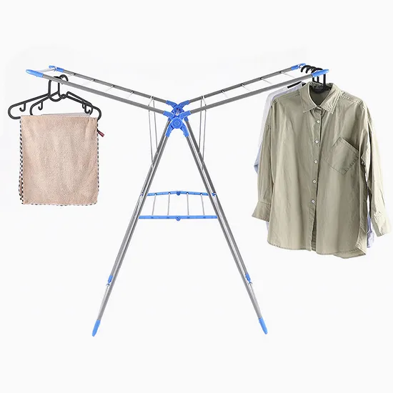 About this item Large Capacity - Clothes drying rack with 4 wings in 2 layers and High Hanger, this clothes hanger rack offers ample space to dry bulky items, towels, kids' clothes, and blankets, making it perfect for those who want to dry lots of clothes at once. Durable Rack - Drying stand made of powder-coated steel pipe, this laundry hanger dryer rack is suitable for both indoor and outdoor use. The triangle structure is stable and sturdy enough to hold up to 40lbs without collapsing or deforming. Foldable Design - This drying stand for clothes comes with non-skid rubbers at the bottom that won't scratch the floor. The collapsible design allows for easy transport from the laundry room or patio and can be stored under the bed to save space. Height Adjustable - The top 2 wings of this supporting bar can be adjusted to 3 heights (from the floor: 38.9'', 44.1'', and 50.0'') enabling you to find the best drying position for your clothes. Everything from pants to shirts will find its own space! Easy to Use - This clothing drying rack requires no assembly or tools to set up. It is ready to use straight out of the box and easy to fold up after usage.