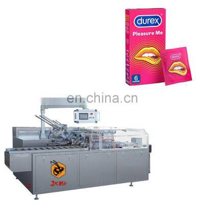 JKMF Automatic Carton Box Packing Machine Cartoning Machine Products DescriptionJKMF automatic cartoning machine can achieve full automatic products conveying & feeding, flat carton feeding, carton opening, products pushing, carton folding, carton closing, finished carton package discharging.Machine InformationAutomatic Box Cartoning Machine is a hot sale product developed and manufactured by our company. It is applied to a variety of foods, toys, cosmetics, electronics and daily necessities. Box packing machineJK-Box sizeL:65~350 mmW:30~350 mmH:15~180 mmWrapping speed40~70 box/minGas source0.5~0.8 MpaMachine weight1300KGMachine power220V, 50HZLarge capacity storage box rackWith the long boxes' feeding shelf design, you can place up to 2000 pcs boxes, the machine will alarm and stop automatically whenthe boxes are going to running out.Sensor Identify the product The box storage shelf will stop to feed boxes once there is no products get detected on the conveyor, which will prevent from the box wasting.Automatic feeding device Pneumatic manipulator can fill materials accurately and at a high speed.Adjustable sealing device With the convenient adjustment design, you can easily to complete the adjustment for the different sizes boxes in 1 min.Why Choose UsJIKE BEE MACHINERY has a professional team to provide customers with various packaging solutions. Fully understanding the needs of customers,engineers design the most suitable solution. We have our own processing and assembly workshop and quality inspection and debugging process to ensure the quality of the machine. After acceptance by the customer, they are packed in international standard wooden cases and shipped.Our technical team has carefully filmed more than 100 installation and commissioning videos of various accessories and complete machines, providing video training guarantee services for the equipment permanently.We will package the machine's instruction manual and a USB flash drive with machine operation videos together with the machine.Ensure that you can use the machine as soon as you receive it. If you have something you don't understand, our after-sales team will also help you answer in time.We package and ship the machines in accordance with export requirements.1.Bottom fixed, avoiding shaking and damaging.2.Wrap whole machine in transparent film.3.Packed by fumigated wooden case, meeting export standard.Company ProfileFoshan Jike Bee Automation Equipment Co., Ltd. is a manufacturer of automatic packaging equipment.We are a production-oriented enterprises focused on product innovation, factory direct sales and perfect after-sales service in one.The automatic packaging equipment for granule, powder, liquid and sauce produced by the Jason company is at the advanced level of the industry,it can be customized production automatic material packaging line for all kinds of products .Mainly applicable to: food, hardware, drugs, daily chemicals, pesticides, fruits and vegetables, cosmetics, other industries.The company has its own patent and product technical certification, which can bring customers high quality equipment and worthy of customer trust.Customer PhotosOur customers have covered more than 80 countries around the world.And give us unanimous praise.CertificationsFAQQ1:Do you have manual or operation video for us to know more about the machine? Yes, not only manual or operation video, 3D drawing also available to make as per your design,also the video we can make of testing the material from our packaging machine if your packing goods easier for us to find from our local market. Q2:How can I trust you for the first time business ?Please note our above business license and certificate. And if you don't trust us, then we can use Alibaba trade assurance service, guarantee your money, and guarantee your machine's on-time delivery and machine quality.Q3:Is engineer available to serve oversea?Yes, but the travel fee is paid by you. So actually to save your cost, we will send you a video of full details machine installation and assist you till the end.Q4:How can we make sure about the machine quality after we put the order?Before delivery, we will send you the pictures and videos for you to check the quality, and also you can arrange for quality checking by yourself or by your contacts in China.Q5:Will you provides the door to door service?Yes. Please offer us your final destination, we will check with our agent to see if it available, and most of the area is ok for us to clearing and sending in your countries.