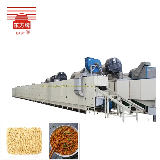 Dryer shown in the picture is the latest type of recent years, it improves the wind speed and temperature, also can ensure relative stability of noodle cakes, without shifting. The maximum temperature can reach 150 ÂșC, the scientific hot air circulation system makes full use of the heating energy, improves the baking effect. Moreover, two minutes of drying time will achieve the requirements of production process.