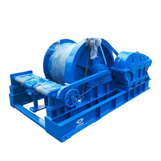 This series electric winch is is made up of motor, brake, drum, wire rope, electrical appliance, base ect ; Electric winch is mainly used for Vertical lifting, Horizontal pulling, Mooring, Anchoring, slipway, mine,Hydro power station,etc.It is suitable for various bridges, ports, docks, ships and other projects and large-scale plant and equipment installation projects.