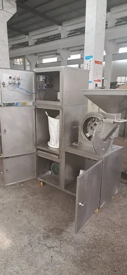 By means of relative motion between movable and fixed fluted discs, material is crushed through impact and friction of teeth and impact among material. The crushed material is entered into the catcher automatically under the effect of rotating centrifugal force, and the dust is filtered and recovered by dust collector through a bag. Designed according to GMP standard and wholly made of stainless steel, this machine has no flying dust during production, and can improve the utilization rate of material and reduce the cost of enterprise, thus reaching the international advanced level.