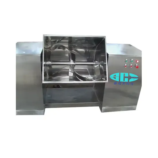 Trough mixer is used to mix powder or paste materials, so that different materials evenly mixed.Its characteristic is the horizontal groove type single paddle mixing, the paddle is through-shaft type, easy to clean.The machine and material contact point all are made of stainless steel, has good corrosion resistance, mixing tank can turn over and pour material automatically.