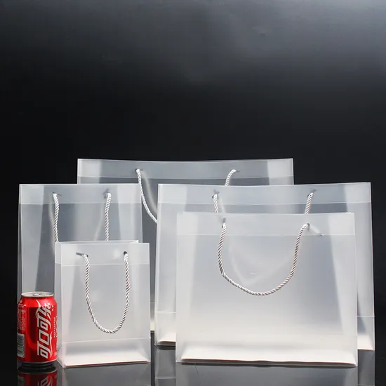 Frosted transparent PP tote bag custom plastic portable gift shopping bag transparent bag custom printed logo