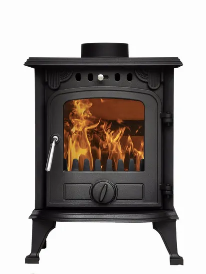 The range of stoves are fully cast iron,Its thick top helps radiate heat long after the stove has cooled down. The fuel itself burns on a mineral cast iron grate that includes a fully folded ash pan with tool. Product Parameters 2022 Eco Design Ready DEFRA APPROVED CE approved Over 83.0% efficient when burning wood Cast iron grate and galvanised ash pan Distance to combustible materials at the rear (800mm) Distance to combustible materials at the side (550mm) Suitable for 12mm hearth. Design and Tested in the UK - All tests carried out by KIWA Gastec in Cheltenham Cool to touch black handle as standard Thick cast iron door Top and rear flue outlet Heat resistant fire rope seals Full vermiculite brick lining Finished in heat resistant matt black paint Flue diameter 125mm (5'') with choice of top and rear flue outlet Tertiary air system that re-burns the smoke for a clean and efficient burn.