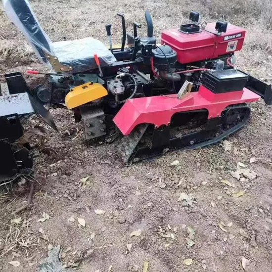 Mini Train Tracked Rotary Tiller With Diesel Engine The frame design is reasonable, using thick steel plate, strong and durable, reducing the vibration generated by the engine and prolonging the life of the machine. The engine adopts 25 horsepower diesel engine. 25 horsepower adopts a customized all-gear gearbox. The front gearbox has 3 forward gears, 1 reverse gear, and a working connection box at the rear. It can be used with a large number of agricultural tools such as rotary tillage and ditching. The left and right steering adopts a tie rod mechanism, which is easy to operate, not easy to damage and malfunction.