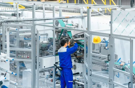 Reference size: 38m x 8m x 5mThe diaper production equipment integrating cutting-edge technology with precise craftsmanship. From raw material input to finished product output, this equipment streamlines the entire process through automation, significantly enhancing production efficiency and product quality.