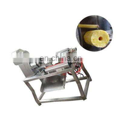 Pineapple peeling machine Parameters:Model No.: JX-2Power: 0.75kw/220vCapacity: 6-12pcs/minWeight: 220kgSize: 1200*700*1300mm Machine Structure:This machine is assembled with stand, scratching knife, peeling knife, knife of removing its core, transmission motor, and pneumatic control. Motor directly drives the peeling column rotate at high speed. This device is suitable for the peeling of pineapple.-It can finish the two processes of peeling and piercing to get the cylindrical pineapple barrel.-It is placed on the feeding rack, which can adjust the center height.-The pineapple is pushed forward by the cylinder, and pushed into the high-speed rotating peeler barrel.-The cutter in the feed bar will cut off the pineapple heart, so as to get the cylindrical fruit barrel. Pictures