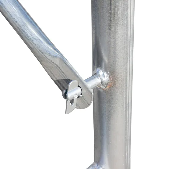 LADDER FRAME is also called walk though frame or H frame scaffold etc. It is a traditional scaffolding and is widely used all over the world. Distance between two frames is connected by cross braces(X brace) and protected by guard rails at the top.