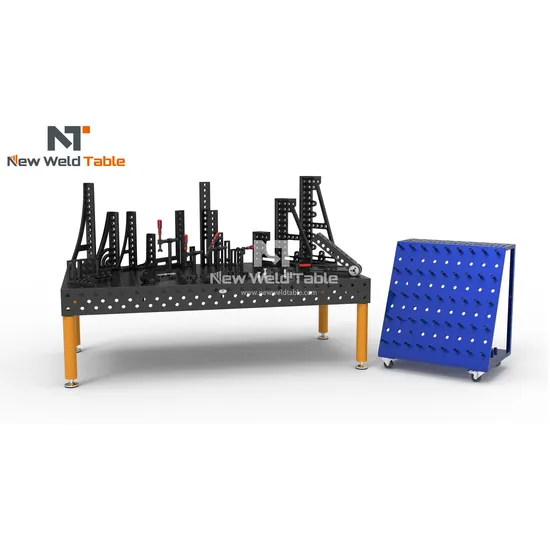 3D welding table is made of ST52.3 material with nitriding + oxidising treatment and 0.2mm nitriding layer on the surface, which is effective in preventing corrosion, non-stick slag and resistant to bumping. with D28 system holes, grid 100 mm x 100 mm Three side rows of grid D28 system holes, 100 mm apart, thus significantly increasing the table extension and clamping area Available in various table sizes, surface hardness up to 600 Vickers. Optimized chamfering of the outer edge of the table, Rounded corners reduce the risk of injury Improved table stability by adding ribbed plates Grid lines with 100 mm spacing in X and Y directions Millimeter precision scales Table surface marked with X and Y coordinates New Weld Table logo on two sides of the table Round universal feet for precise height adjustment of the table The rib spacing is 400-500mm, providing strong support. Side holes arranged diagonally Product Parameters