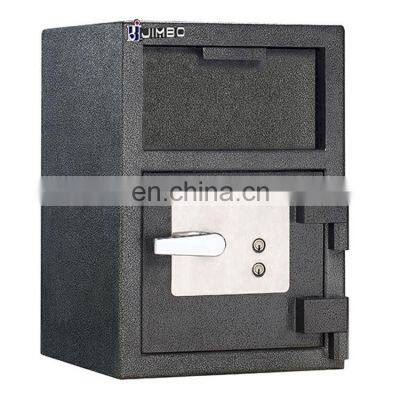 Products DescriptionFireproof safe*Product NameJimbo Home metal coin drop cash money key bank security mechanical depository deposit safe box*Brand NameJimbo*Product ModelDH Series*SizeH508*W355*D355mmWeight45 kg*MateritalHigh quality cold rolled steel sheet Q235*Door Thickness10 mm*Body Thickness3 mm *LockKey Lock*HandleBrushed solid steel handle*CertificateJIS, CE , RoSH , SGS , ISO 1182*Available colorWhite , Black , body and door can be in different colors*Packing5 layer standard export carton with thickened foam*SurfaceDurable electrostatic powder coating*Main productsFireproof safe, Bulglarproof safe, Home safe ,Vault door, Watch winder safe, Hotel safe box, Steel Lockers, Filing CabinetsRecommend ProductsCompany ProfileFoshan jimbosafe Co.,Ltd established in 2012, exporting our safe box to more than 118 Countries with over 10 years history . Located in Foshan,Guangdong, Jimbo owns 5,000m2 Modern Workshop, 50 Skilled workers,3 Reliable QC and 10 production machines and passed 4 certification (CE, ROHS, SGS, ISO). Through our experienced sales team, we finish 50,000,000.00+RMB turnover per year and keep growing.As Assessed Supplier by Alibaba, we hope can cooperate with you!Our TeamProduct packagingFAQProduction relatedIf you have any other questions, we would be more than happy to answer them for you. Please contact us below:Mrs. AnnEmail: annie@jimbosafe.com / Jessica@jimbosafe.com / sales01@jimbosafe.comMob & Wechat & WhatsAPP ::+861666567569Q: Do you provide samples?A: We can provide a sample with freight and handling charges at your expense.Q: How do you send your samples?A: We usually send via international couriers such as DHL, FedEx or UPS. We can also work with you if you have other alternative arrangements.Q: What is your lead time? A: Our production lead time is typically between 25 to 45 days from receiving payment, depending on chosen items, quantities and specific requirements. We can have off the shelf goods ready to be shipped in 5 to 10 days if there are available stock and no change request.Q: Is there any warranty offered for the product?A: A two-year Limited free-warranty is offered.Q: What are your payment terms?A: We can work with L/C or 30% deposit upon ordering and remaining balance prior to shipping of products. We can provide photos of finished goods and also accept on site final inspection.