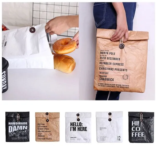 Wholesale Hot Sale Reusable Durable Insulated Thermal DuPont Kraft Brown Paper Leakproof Waterproof Tyvek Cooler Roll up Insulated Lunch Bag