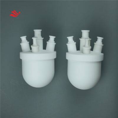 | 6. The PTFE flask has single neck, three neck and four necks, standard ports of 17, 19 and 24, and each standard port is equipped with a stopper |