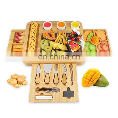 Wholesale Custom Natural Premium Platter Charcuterie Bamboo Cheese Board Set With 3 Cheese Knife Tools