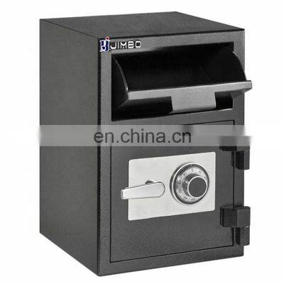 Products DescriptionFireproof safe*Product NameJimbo portable hotel metal depository coin drop cash money bank safety vault deposit safe box cabinet*Brand NameJimbo*Product ModelDH Series*SizeH508*W355*D355mmWeight45 kg*MateritalHigh quality cold rolled steel sheet Q235*Door Thickness10 mm*Body Thickness3 mm *LockKey Lock*HandleBrushed solid steel handle*CertificateJIS, CE , RoSH , SGS , ISO 1182*Available colorWhite , Black , body and door can be in different colors*Packing5 layer standard export carton with thickened foam*SurfaceDurable electrostatic powder coating*Main productsFireproof safe, Bulglarproof safe, Home safe ,Vault door, Watch winder safe, Hotel safe box, Steel Lockers, Filing CabinetsRecommend ProductsCompany ProfileFoshan jimbosafe Co.,Ltd established in 2012, exporting our safe box to more than 118 Countries with over 10 years history . Located in Foshan,Guangdong, Jimbo owns 5,000m2 Modern Workshop, 50 Skilled workers,3 Reliable QC and 10 production machines and passed 4 certification (CE, ROHS, SGS, ISO). Through our experienced sales team, we finish 50,000,000.00+RMB turnover per year and keep growing.As Assessed Supplier by Alibaba, we hope can cooperate with you!Our TeamProduct packagingFAQProduction relatedIf you have any other questions, we would be more than happy to answer them for you. Please contact us below:Mrs. AnnEmail: annie@jimbosafe.com / Jessica@jimbosafe.com / sales01@jimbosafe.comMob & Wechat & WhatsAPP ::+861666567569Q: Do you provide samples?A: We can provide a sample with freight and handling charges at your expense.Q: How do you send your samples?A: We usually send via international couriers such as DHL, FedEx or UPS. We can also work with you if you have other alternative arrangements.Q: What is your lead time? A: Our production lead time is typically between 25 to 45 days from receiving payment, depending on chosen items, quantities and specific requirements. We can have off the shelf goods ready to be shipped in 5 to 10 days if there are available stock and no change request.Q: Is there any warranty offered for the product?A: A two-year Limited free-warranty is offered.Q: What are your payment terms?A: We can work with L/C or 30% deposit upon ordering and remaining balance prior to shipping of products. We can provide photos of finished goods and also accept on site final inspection.