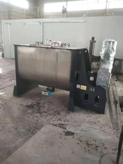 Product Description Horizontal ribbon mixer by a U-shaped shell, spiral mixer into the blades and drive components; spiral ribbon blade is double internal and external structure of the material from both sides of the outer spiral to the central collection, inner spiral of the material transport from the center to both sides , forming convective mixing . Horizontal ribbon mixer for cohesive or cohesive mixture of powder and add the liquid and pasty powder mixed materials with good results , cylinder cover can be made fully open the door , so that the equipment replace cleaning products.