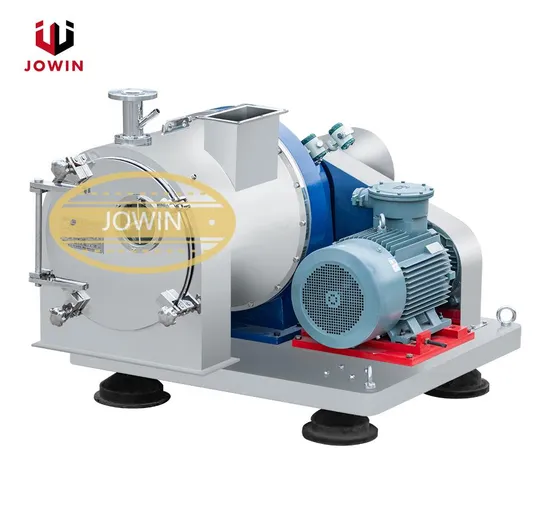 LLWZ Thickening Screen Worm Centrifuges It is a combination of a solid bowl decanter centrifuge and a screen worm centrifuge with exceptional dewatering results. In the decanter component, the feed suspension is first pre-thickened, i.e. it is extensively dewatered in the conical part of the solid bowl. The liquid is clarified in the cylindrical part and finally discharged. The pre-thickened solids are transported into the cylindrical screen section by the worm where additional dewatering is achieved. This centrifuge is particularly applicable for the solid-liquid separation in chemical, pharmaceutical and other industries. It features large processing capacity and low moisture rate of solid content. Especially for conditions that mother liquid with low solid concentration or mother liquid with small amount of oil substance, with better effect.