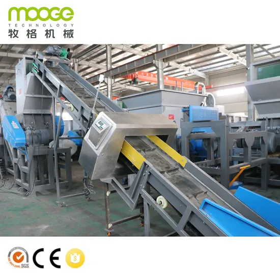 This Mooge plastic bottle washing recycling production line is designed and manufactured by MOOGE TECH, which is widely used for waste rigid plastic HDPE bottle, PP kettle, etc.