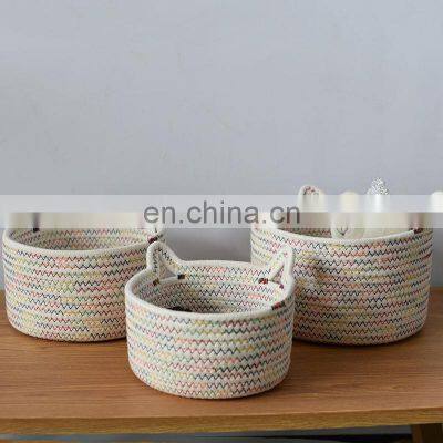 Related ProductProduct Description1. Modern design and style to suit your home. Make your plant look more beautiful and organize your laundry and clutter by putting in this beautiful handmade Basket.2. Handcrafted by skilled artisans who have been perfecting their craft in the hand loom process for generation, these baskets for storage is of the highest quality, brings a stylish look and keep you up with the latest trends of home decor. These Storage Bins with Lid are the perfect addition to any room in your home.3. Our natural handcrafted Storage Organizer Baskets are a perfect way to merge functionality and stylish charm. This jute baskets with cover can also be used for storing and organizing clothes, wardrobe, toys, pet possessions, crafts, baby clothing, diapers, and just about everything else. Use it as storage baskets for wardrobe, laundry basket, clothes storage bin, toy storage bin, storage baskets for clothes, baskets for storage in kitchen pantry or bedroom.4. This Storage Basket is the perfect embodiment of urban need and modern design aesthetics. Helps eliminate clutter while making it easier to find what you need. Efficiently designed with ample storage space, this basket can be used to store extra blanket, cushions or can be purposed as a laundry bag or toy basket also. The lid of this hamper conceals smelly clothes while also Keeping your Dirty Laundry Out of Sight.Product NameWoven Storage BasketTypeStorage basket MaterialCotton ropeStyleEurope and AmericaShapeRoundSizeSmall - 18 X 10 cmMedium - 21 X 12 cmLarge - 24 X 14 cmColorPink, dark grey, white, light yellowWeight315 g / 245 g / 200 gOEMAcceptedProduct ShowsCompany ProfileOur ServiceExpress Delivery by FedEx, DHL, TNT, UPS, EMS Shipment Weight1 - 45 kg45 - 200 kgor MoreMode of ShipmentBy CourierBy Courier / AirBy Air / SeaLead Time5 - 7 days5 - 7 days5 - 7 days30 days to Europe / USADoor to door delivery carrier includes: DHL, Fedex, UPS, TNT, EMS etc.A full range of sea and air logistics to provide you with the most convenientlogistics experience, rapid response to save your time.Payment TermsTrade AssurancePayPal / Secured PaymentWestern UnionBank TransferFor any amount< $ 5000For any amountFor any amountFrequently Asked QuestionsQ: Why choose us?• Lowest factory price with good quality• Low Minimum Order Quantity • Free sample to check quality• We also accept trade assurance order to protect buyerQ: What kind of method do you use to put customized logo?• Silk screen printing • Laser engraving • Etching• Stamping• Embossing / Debossing and any other mode you wantQ: How to save sample cost?• Stocked item, no MOQ. Small batch production also welcomedQ: How to get a sample?• We can supply free sample of standard product, you just need to bear the shipping cost.• For customized sample, please contact us for sample cost.Q: What is sample time and production?• Existing sample: 2-3 days• Customized sample: 7-10 days• Mass Production Time: 25-30 daysQ: What is your shipment term?• We can send your shipment by Sea / Air / Door to door courier, depends on the shipment size we can give you suggestions.• As we are sending shipments frequently by courier , we are getting good discount from the carrier, and we will transfer the benefit to you.Q: What is your term of payment?• We are quite flexible about payment, we accept T/T, PayPal, Western Union, Trade Assurance, etc.Contact DetailsPhone Number0086-512-68080479 (Ext No.602)Email Idsales@esunrix.comWhatsApp+86 13606131434Skypesunrise-sales3WeChatesunrix
