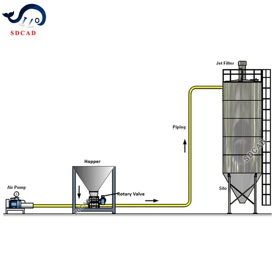 Application: Cement, fly ash, starch, sugar, salt, sand, plastic pellets, oats, polymers, lime, soda ash, plastic resin, plastic powder, dry milk, and feeds Pneumatic Conveying System