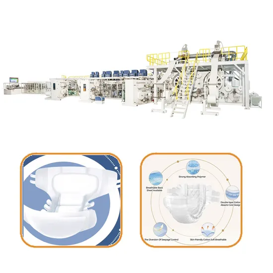 The production line uses a newly forming system and advanced automatic waste removal system, in line with UE, UL, and CAS safety performance certification, a fully automated quality management system, and an application management system, which can automatically eliminate, and reject unqualified products, through the high-tech electric eye, to ensure high-quality diaper products.