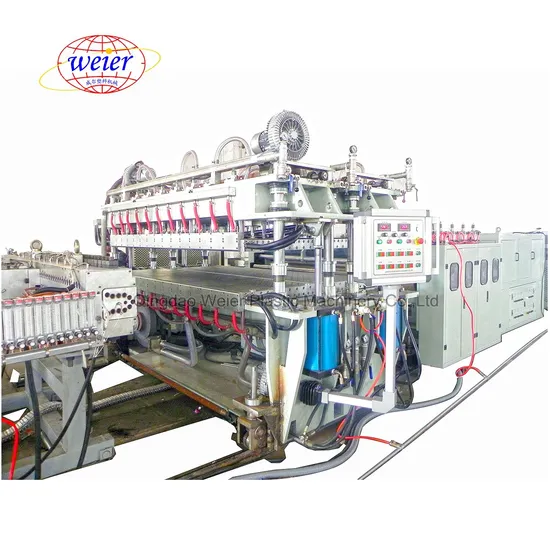PP PE PC Hollow grid sheet machine from Weier falls into two broad categories. One of which is equip the single screw extruder,machine with high cost performance. Another is equip the parallel twin screw extruder, it has the characteristics of higher fillermatch for reduce the cost, Increase product profits. Both devices are used for sheet making with width from 1220mm to 2600mm and thickness from 1.5mm to 12mm ,depends to different modelsch model,also we have the co-extrusion type for customer choose.Our machine have the advantage of high output,easy operation,high precision,good products with smooth surface straight rib. PP/PE hollow sheet is light and high strength, moisture-proof, good environmental protection and re-fabrication performance and can be used into the reusable container, packing case, clapboard, backing plate and culet.