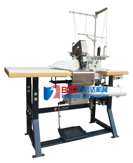 This machine is used for both overlocking and doing flanging on the mattress panel border. Its feature as: Japanese Juki modified ,HoHsing motor , strong-suction waste collection device, synchronization belt feeder, 5thread ,with non-woven fabric stand and system .